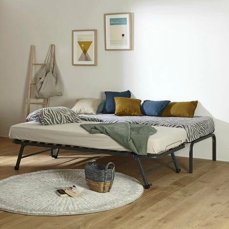 Disposez d’un véritable couchage en adoptant le sommier supérieur Strata. Sur pieds, ce cadre métallique constitue une base solide de votre couchage à 37,5 cm du sol. Utilisez-le seul comme véritable lit ou associez-le à un sommier gigogne pour former une solution gain de place des plus pratiques.