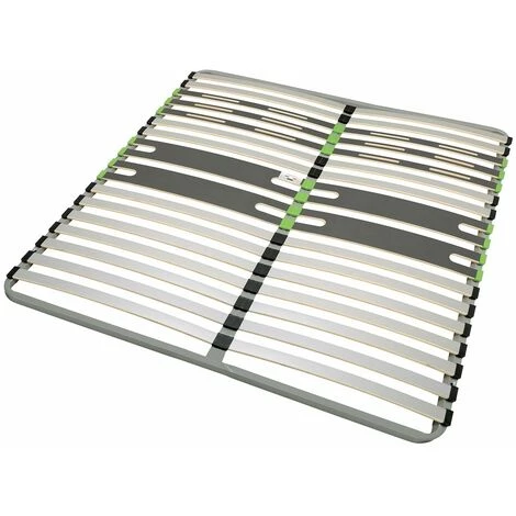 Il est composé de 2×14 lattes en bouleau multiplis largeur 53 mm , épaisseur 8 mm, et 2×2 lattes larges en bouleau multiplis largeur 151 mm , épaisseur 8 mm. Structure tube métal carré, laqué epoxy coloris gris. Coins arrondis.