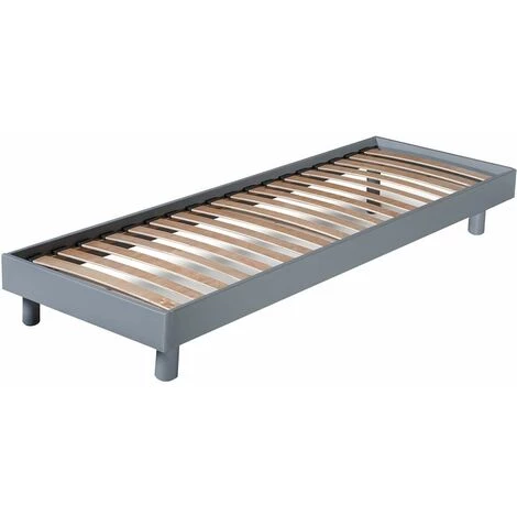 Structure en pin massif teinté anthracite. Traverses en pin massif. Livré avec un jeu de 4 pieds Diam 60 mm assortis. 18 Lattes multiplis bois et embouts polypropylène. Livraison en Kit, avec visserie et notice de montage.
