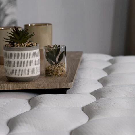 Suspension: Hauteur totale : 24 cm ; ressorts ensachés ; contour interieur matelas en mousse polyurethane HD