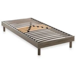 DEKO DREAM Rakenne Sommier Tapissier A Lattes 90 X 190 – Bois Massif Gris Anthracite + Pieds