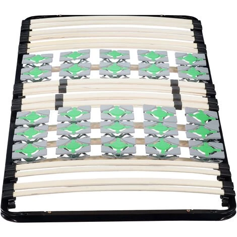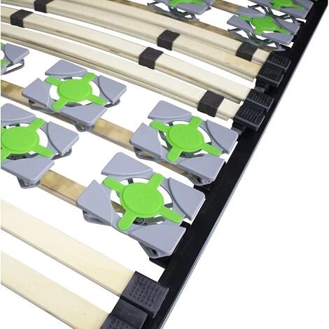Le sommier est composé de 14 lattes en bois + 20 disque/plots de chaque côté, adaptés à tout type de matelas. Les plots bougent pour une meilleure adaptation de votre matelas à votre corps.