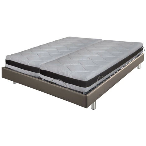 Nom: Lit électrique 2x80x200 Relax Action simili taupe