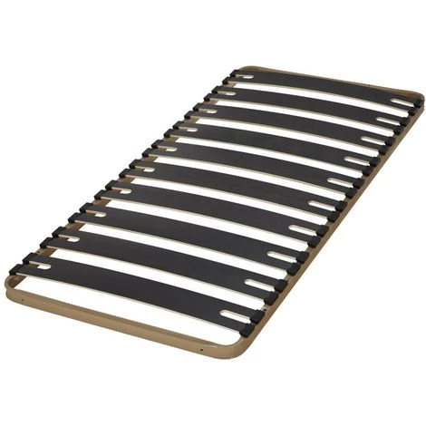 Structure: Cadre métal cintré en tube rectangulaire de 40 x 27 x 2 mm, lattes extra large multiplis bois largeur 125 mm épaisseur 8 mm, embouts polypropylène