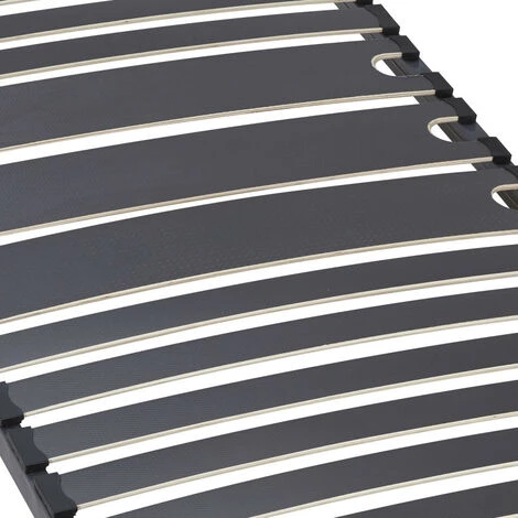 Structure: Cadre métal cintré en tube rectangulaire de 40 x 27 x 2 mm, lattes multiplis bois largeur 50 mm épaisseur 8 mm, 3 lattes spéciales « zone lombaire » largeur 125 mm épaisseur 8 mm, embouts polypropylène