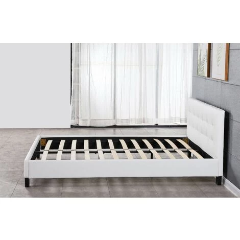 Lit + Sommier + Tête de Lit Capitonnee + 6 Pieds en 10 cm Couleur BLANCCaracteristiques:1 Lit simple solide en bois, avec des lignes epurees, ce lit sera un ajout apprecie aux chambres et au salon, egalement ideal pour les petits espaces, les enfants, les adolescent, les invites et les adultes.2 Un sommier solide avec de 14 resistantes et confortables Lattes en bois 5 cm de large et 0,9 cm d’epaisseur + Pieds Hauts en 10 cm3 Resistant aux chocs et aux rayures epaisseur du Metal +/- 1,2 mm . Tissu PVC Simili etanche tres facile d’entretien 4 Livraison rapide5 Hauteur de la Tête de Lit Capitonnee 69 cm , Hauteur des longs pans 18 cm et Epaisseur 3 cmS’il vous plait noter:* Le matelas n’est pas inclus.* Ne serrez pas les vis jusqu’a ce qu’elles soient completement assemblees.* Ne Pas utiliser ce produit si des pieces sont manquantes, endommagees ou usees.* Ne Pas permettre aux enfants de sauter sur le lit, car cela pourrait causer des dommages au chassis.* Veuillez verifier et serrer toutes les vis et boulons vers le haut tous les 3 mois pour assurer la stabilite.