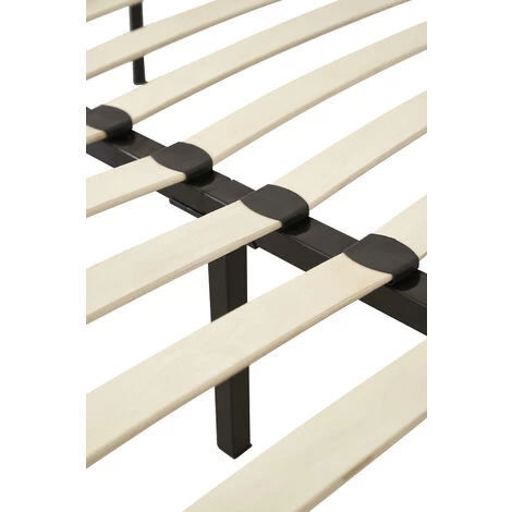 Sommier Cadre a lattes + 9 Pieds Caracteristiques:1 Lit simple solide en metal, avec des lignes epurees, ce lit sera un ajout apprecie aux chambres et au salon, egalement ideal pour les petits espaces, les enfants, les adolescent, les invites et les adultes.2 Un sommier solide avec Lattes en bois 5,3 cm de large et 0,9 cm d’epaisseur resistantes – Pieds Hauts en 25 cm3 Resistant aux chocs et aux rayures epaisseur du Metal +/- 1,2 mm . revetement anti-rayures noir4 Livraison rapide5 Extremement solides – Adapte aux collectivites Dortoirs Camping Hotel GitesS’il vous plait noter:* Le matelas n’est pas inclus.* Ne serrez pas les vis jusqu’a ce qu’elles soient completement assemblees.* Ne Pas utiliser ce produit si des pieces sont manquantes, endommagees ou usees.* Ne Pas permettre aux enfants de sauter sur le lit, car cela pourrait causer des dommages au chassis.* Veuillez verifier et serrer toutes les vis et boulons vers le haut tous les 3 mois pour assurer la stabilite.