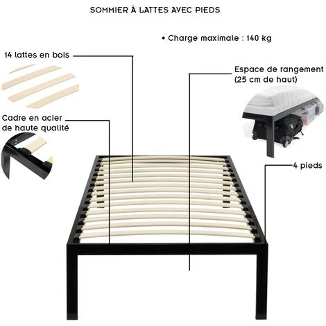 Ce sommier à lattes est fabriqué en acier de haute qualité.