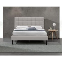 LITERIE JULIEN Lit Riley Pour Matelas 90×190 – Sommier + Tête De Lit Capitonnee Couleur GRIS + Pieds En 16 Cm Pour Matelas – 13 Lattes – Revetement PVC Simili Facile D’entretien – Montage Rapide Et Facile