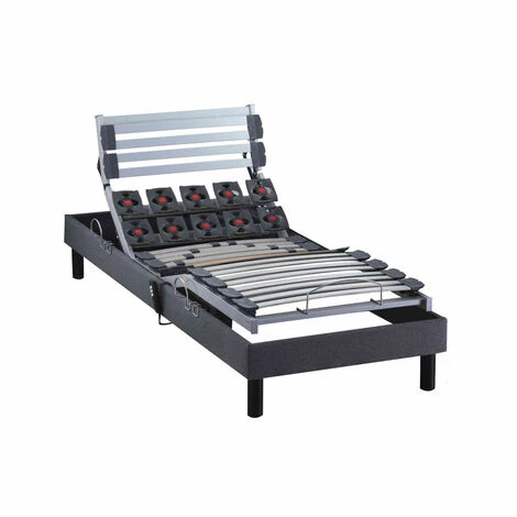 Sommier électrique de relaxation en bois, équipé d’arrêts matelas et d’un boitier commande filaire. Tête et pieds relevables, moteur 2×4000 N et pieds inclus.