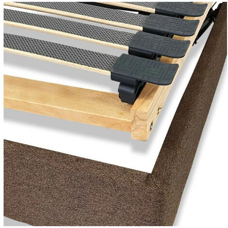 Zone bassin-lombaires avec réglage de fermeté grâce à 4 lattes doubles munies de curseurs de fermeté. Curseurs en couleur noir.