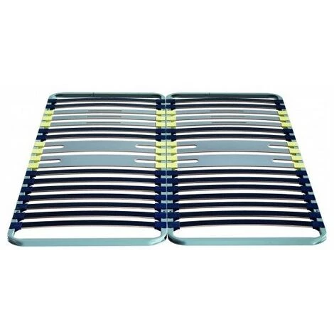 CADRE À LATTES 5 ZONES Résistance et durabilité – embouts plats Flat cap® Morpho zone épaules assouplie et zone bassin raffermie Hauteur 4 cm 18 lattes multiplis dont 2 lattes larges et 3 lattes ajourées en 140 x 190 cm Pied central réglable inclus Pied de jumelage réglable inclus en 2×80 cm