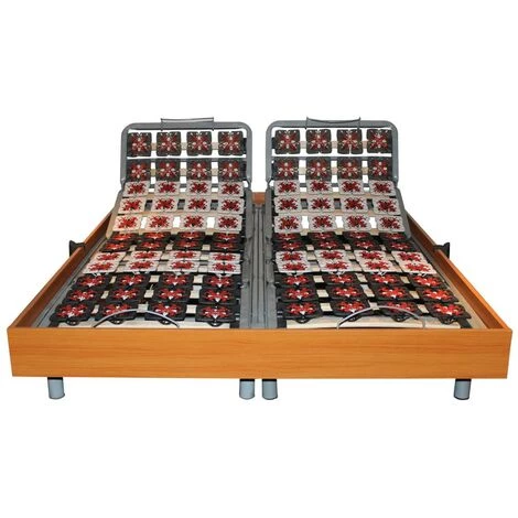 - 2 sommiers indépendants intégrés dans un entourage bois décor merisier de hauteur 15cm et d’épaisseur 1,5cm.